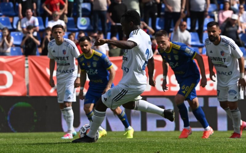 Lansat în adâncime de Miron, Dumiter îi păcălește pe apărătorii ialomițenilor și își trece în cont un gol, după pasa decisivă de mai devreme.