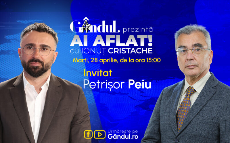 Invitatul emisiunii este Petrișor Peiu. Emisiunea poate fi urmărită pe Facebook și YouTube Gândul.