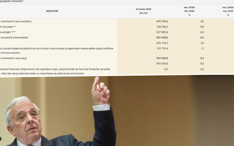 Banca Națională a României (BNR) a anunțat că masa monetară în sens larg (M3) a ajuns la un sold de peste 793 de miliarde de lei în martie 2026. Totalul banilor din România a crescut cu 0,5% față de luna februarie 2026, iar în raport cu aceeași lună din anul precedent s-a majorat cu 7,3%. În termeni reali însă, puterea de cumpărare a banilor a scăzut cu 2,4%, arată datele BNR.